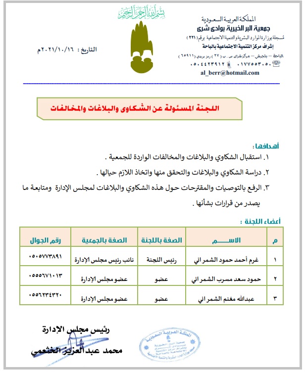 اللجنة المسئولة عن الشكاوى والبلاغات والمخالفات