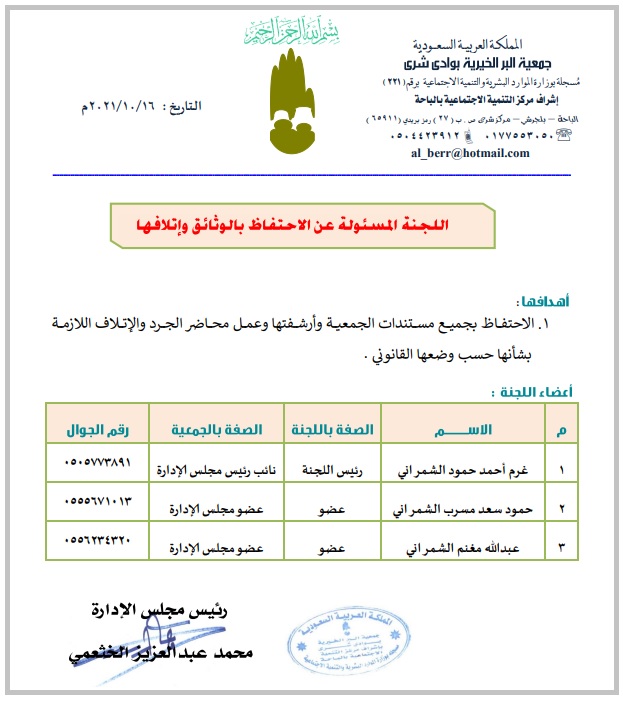 هذه السياسة تقدم الإرشادات التي على الجمعية إتباعها بخصوص إدارة وحفظ وإتلاف الوثائق الخاصة بالجمعية.